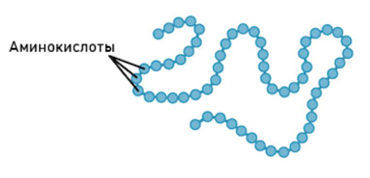 - Первичная структура (Полипептидная цепь из аминокислот, образованная пептидной связью).