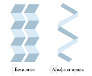 - Вторичная структура (Преобразует форму aльфа-спирали, либо бета-спирали. Преобладает водородная связь).