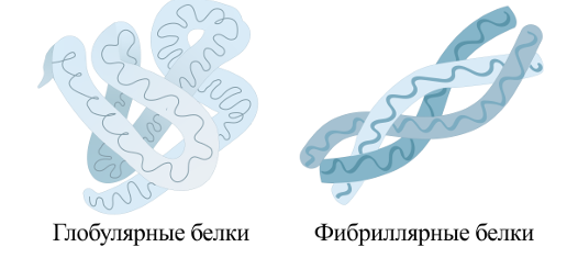 - Четвертичная структура (Структура из нескольких глобул. Удерживаются меду собой сложными межмолекулярными взаимодействиями. Могут включать ионы металлов). Примерами четвертичной структуры являются белки гемоглобин (в крови) и миоглобин (в мышцах), состоящие из 4 глобул и ионов металлов.