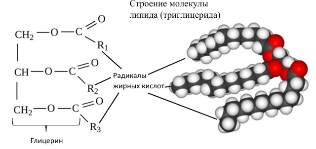 Липиды – неполимерные соединения, состоящие из молекулы глицерина и остатков жирных кислот.
